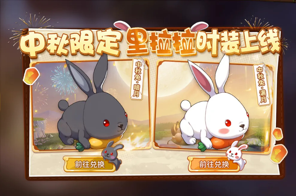 中秋将至,共聚团圆!本次更新也为大家备足中秋好礼,在此为您准备了一份月饼制作和食用、里拉拉限定皮肤优惠获取、如何变身黑白兔子相关指南,请查收。