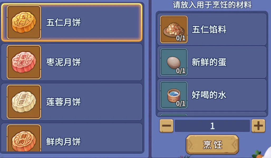 简化流程:获得月饼食材(馅料)--> 制作对应料理(月饼) --> 料理在战中使用时生效对应buff
