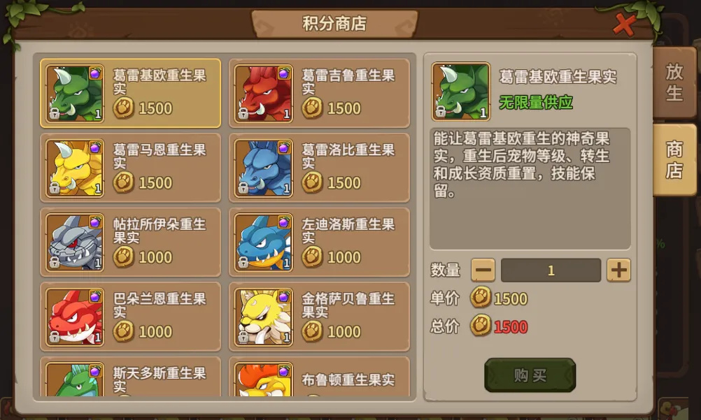 ③ 前往【积分商店】通过积分兑换心仪的重生果实。