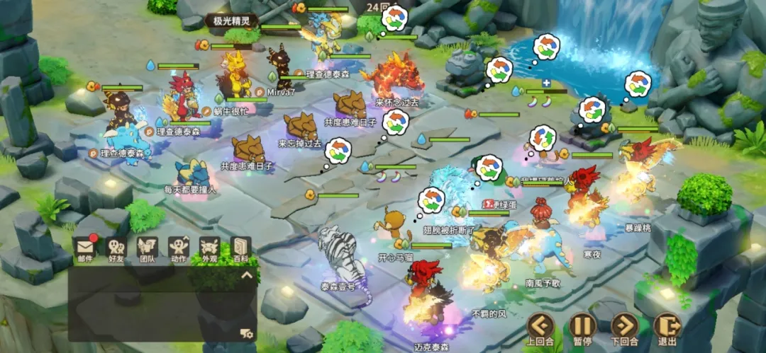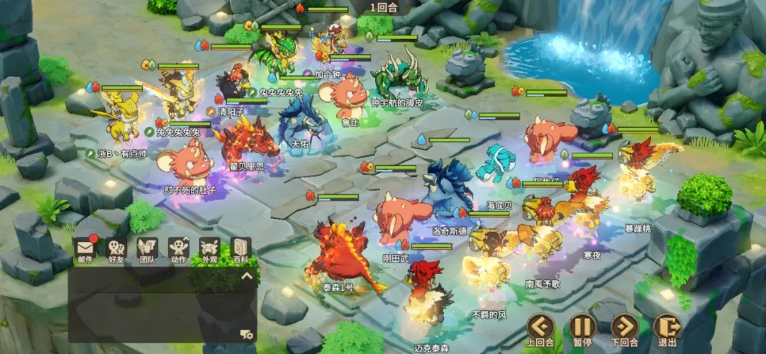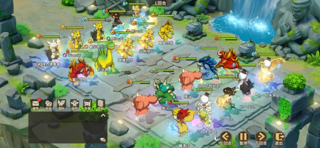 开局“微氪玩家”有所领先,弓箭连同吃到场地伤害的鲁比打出高额输出,首回合就将爪攻选手“Wuzz66”和1只马年击倒。