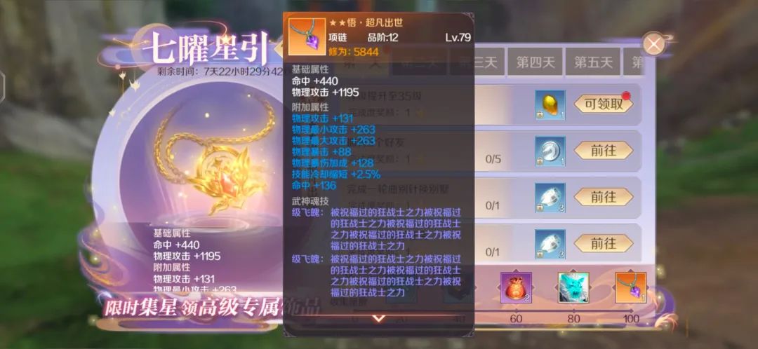 七曜星引七曜星引将在修真者们踏足完美大陆时同步开启,每完成一项任务修真者都可以领取一定奖励以及