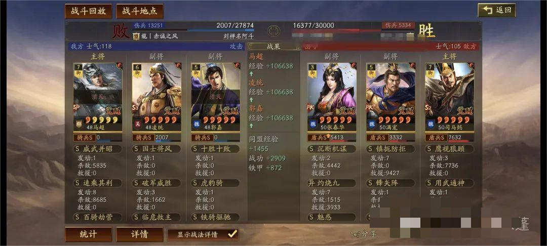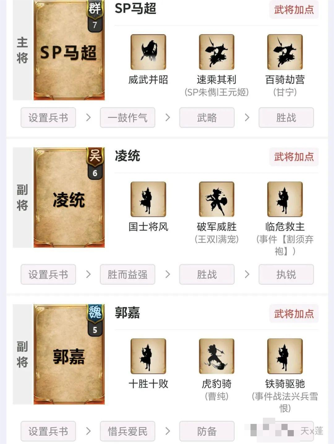 凌统给予队友先攻、必中、增伤,如果给到sp马超西凉铁骑有死无生,枪锋所过处无生人!队伍的机制与孙尚香吴骑比较相似!