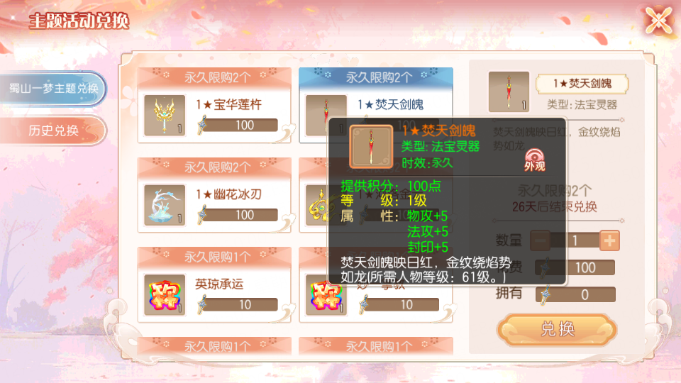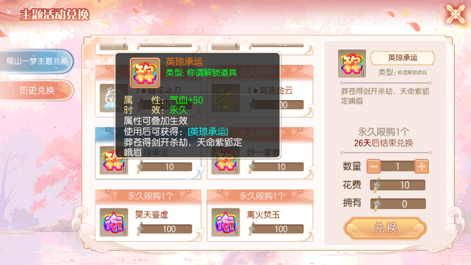 【蜀山一梦】主题兑换上新