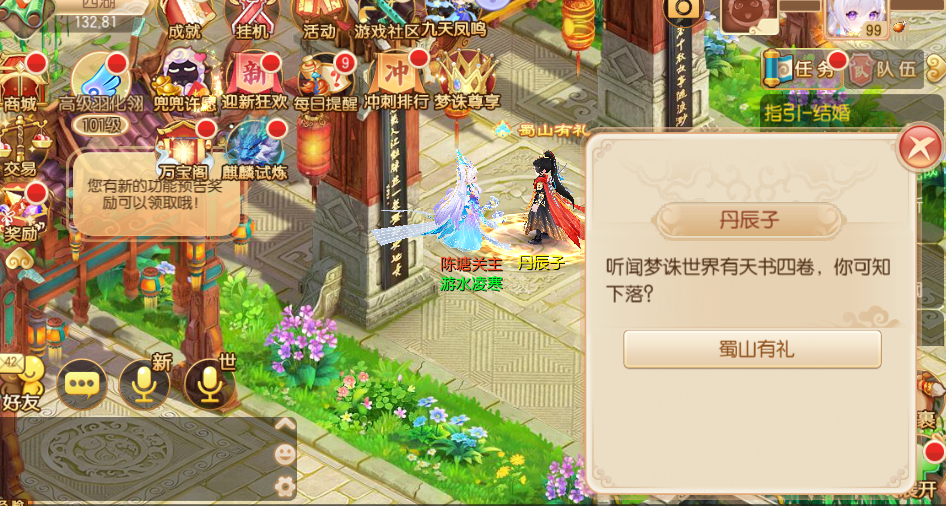 2025年12月30日-2026年1月31日,等级≥30级的少侠,与丹辰子对话,即可领取金币和蜀山主题活动专属兑换道具“蜀山一梦”。