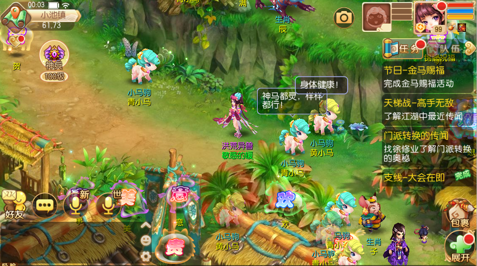 马年到了,可爱的小马也来到了梦诛的世界!每小时,可爱的小马会闯入南疆、大王村、河阳、京城、小池镇,大家快去找他们要新年祝福吧!