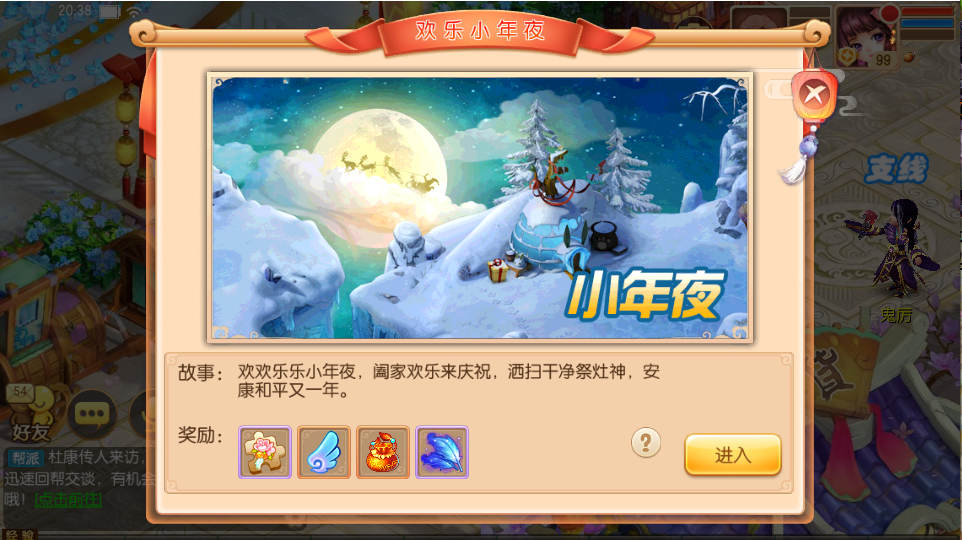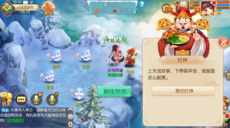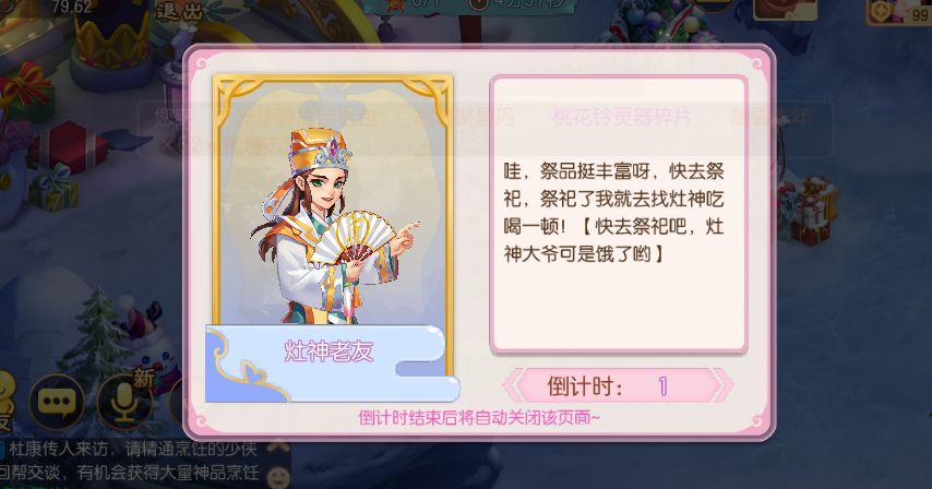 活动的第三个阶段,祭祀灶神。少侠只要跟灶神进行对话,就能获得丰厚奖励!