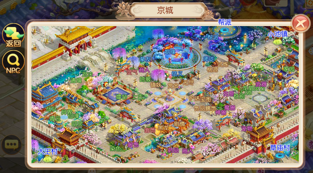 4、对京城的NPC根据功能进行了更合理的布局及位置调整;日常、周常NPC位置更加集中,方便少侠们寻找,缩短寻路时间。