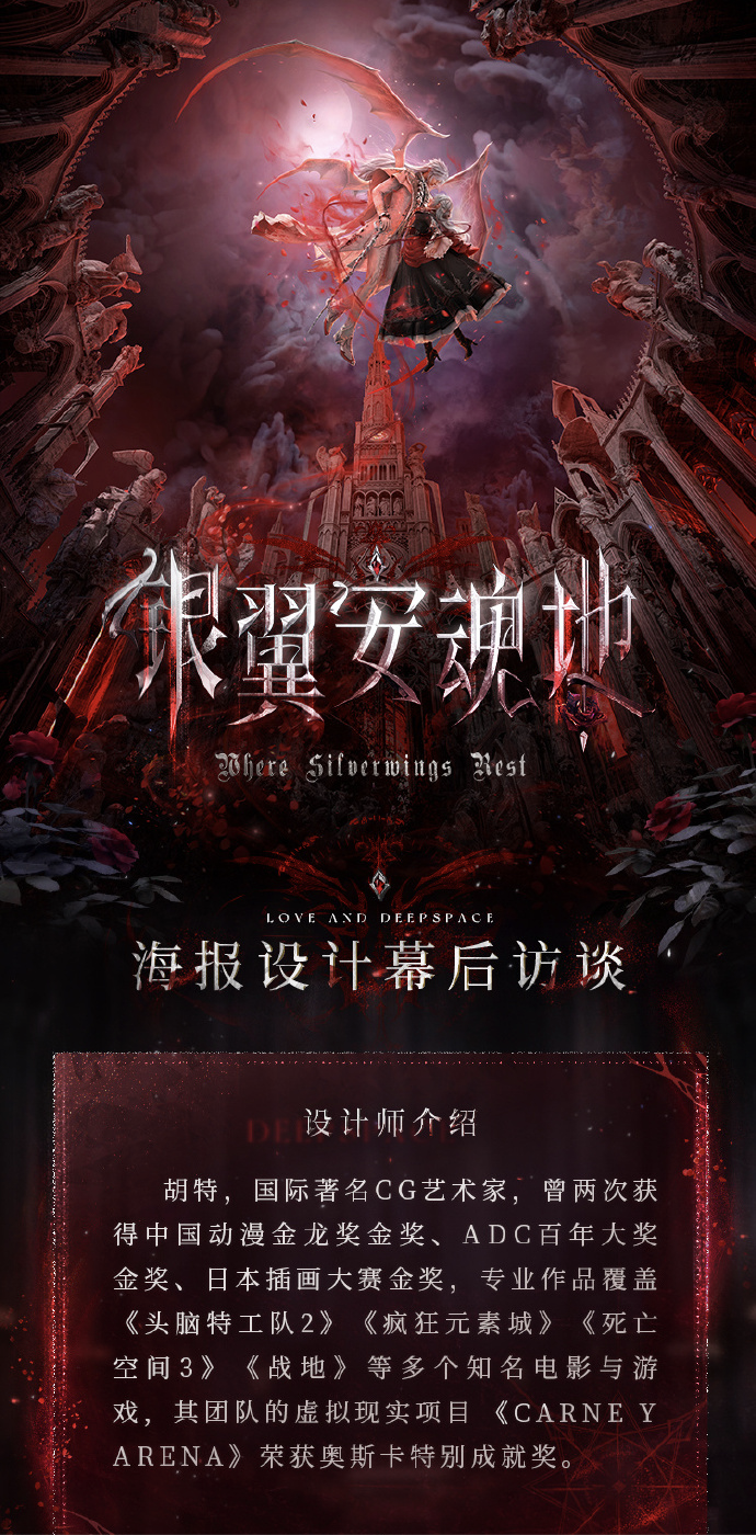 另一方面,新卡卡面设计的技术力也同样拉满,采用了主机级发丝渲染与动态粒子特效,战斗装扮「赤月裁野」及幻色皮肤「雾夜饮宴」融入银翼骨翼、血棺召唤等哥特元素,在玩家群体中收获了“电影级质感”的广泛好评。另外官方还邀请了奥斯卡获奖设计师胡特参与海报创作并分享创作过程,积极把游戏以及活动主题的独特美学传播开去。
