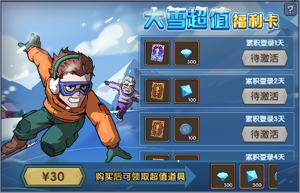 活动界面上架【大雪福利卡】!