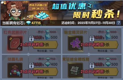 活动期间每晚21:00开启商品限时秒杀,超值优惠等你来购!