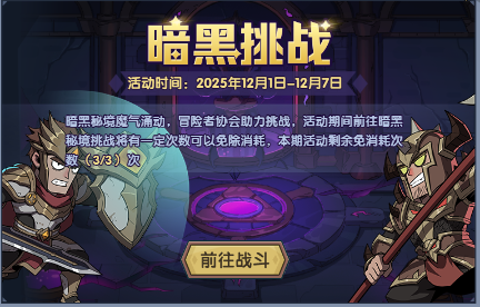 活动期间挑战暗黑秘境优先扣除免消耗次数,快去挑战吧~