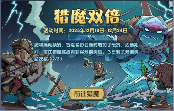 活动期间进行猎魔挑战,结算时获得双倍奖励(圣物图纸除外)
