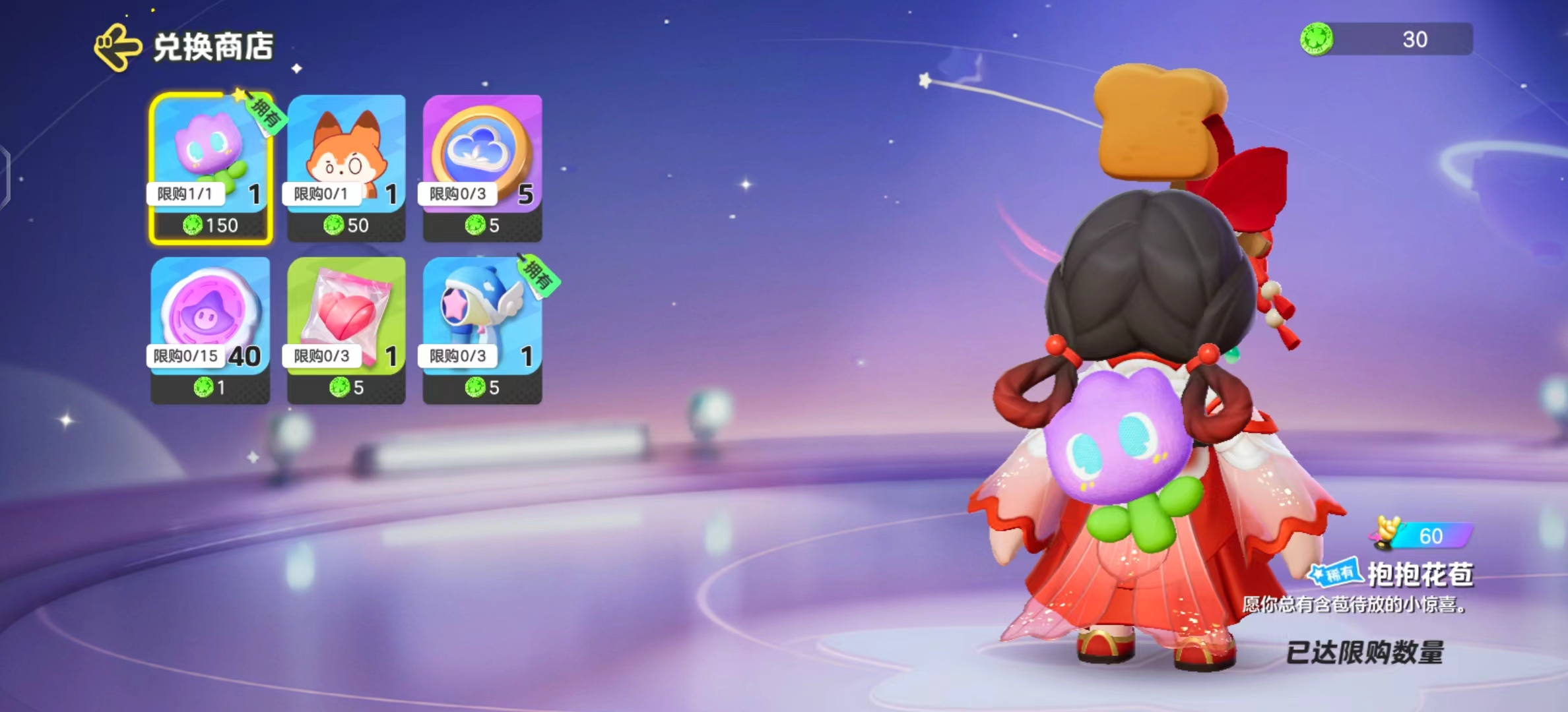 点击活动页面右上角的【兑换商店】,可以看到本次活动的兑换奖励池。萌萌的花苞背饰,星妹已经秒速拿下了!另外还有超好用的小红狐表情-尊嘟假嘟,云朵币、星宝印章、亲密道具和泡泡机~奖励多多,接下来就去和搭子们一起完成组队开局、合影留念的任务吧!