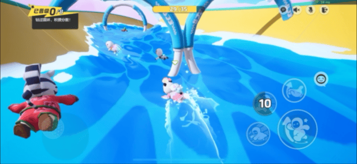 比赛一开始,星宝需要经过一段只有蓝白环的滑道。冲刺起步,加上控制好方向,从环中通过就能速吃3分啦!