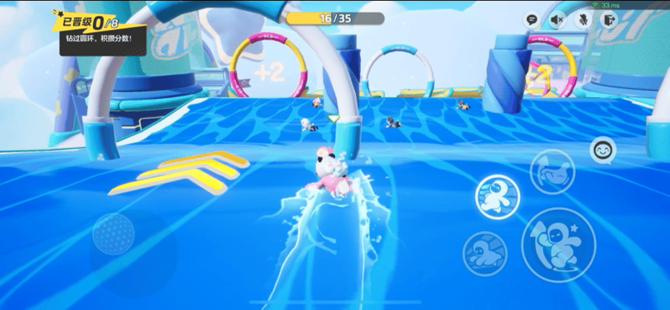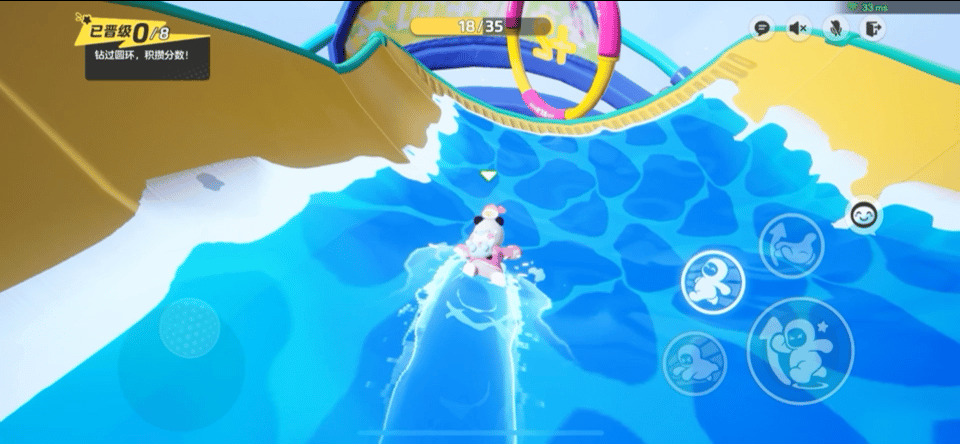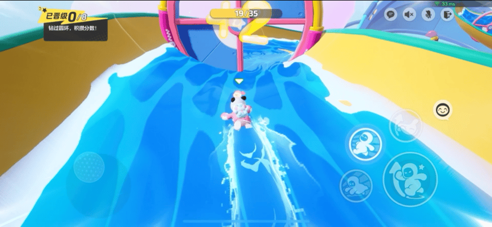 游玩之前,先来了解一下不同圆环带来的分数!钻过普通的蓝白圆环可积1分,粉黄圆环可积2分。要想在激流勇进的滑道上率先通关,既要和别人比速度,又要利用技巧多钻高分圆环。
