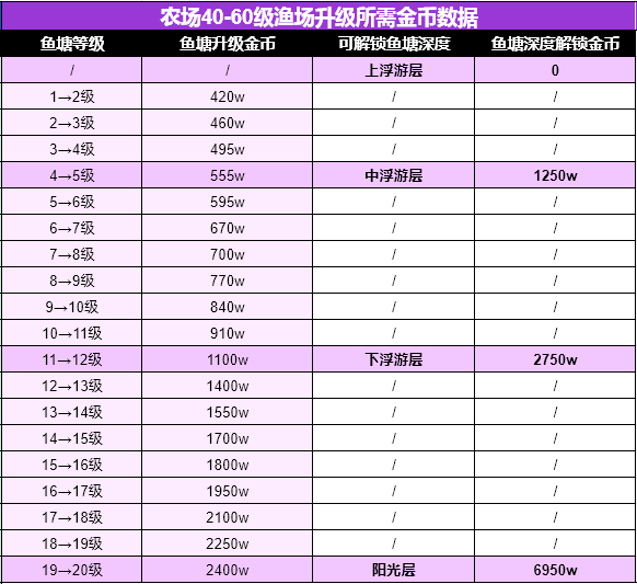 农场等级达到40级之后,渔场权限开放,又是好大一笔支出。在这个阶段,如何权衡分配农场、牧场及渔场的金币投入至关重要,草率升级很有可能直接破产。