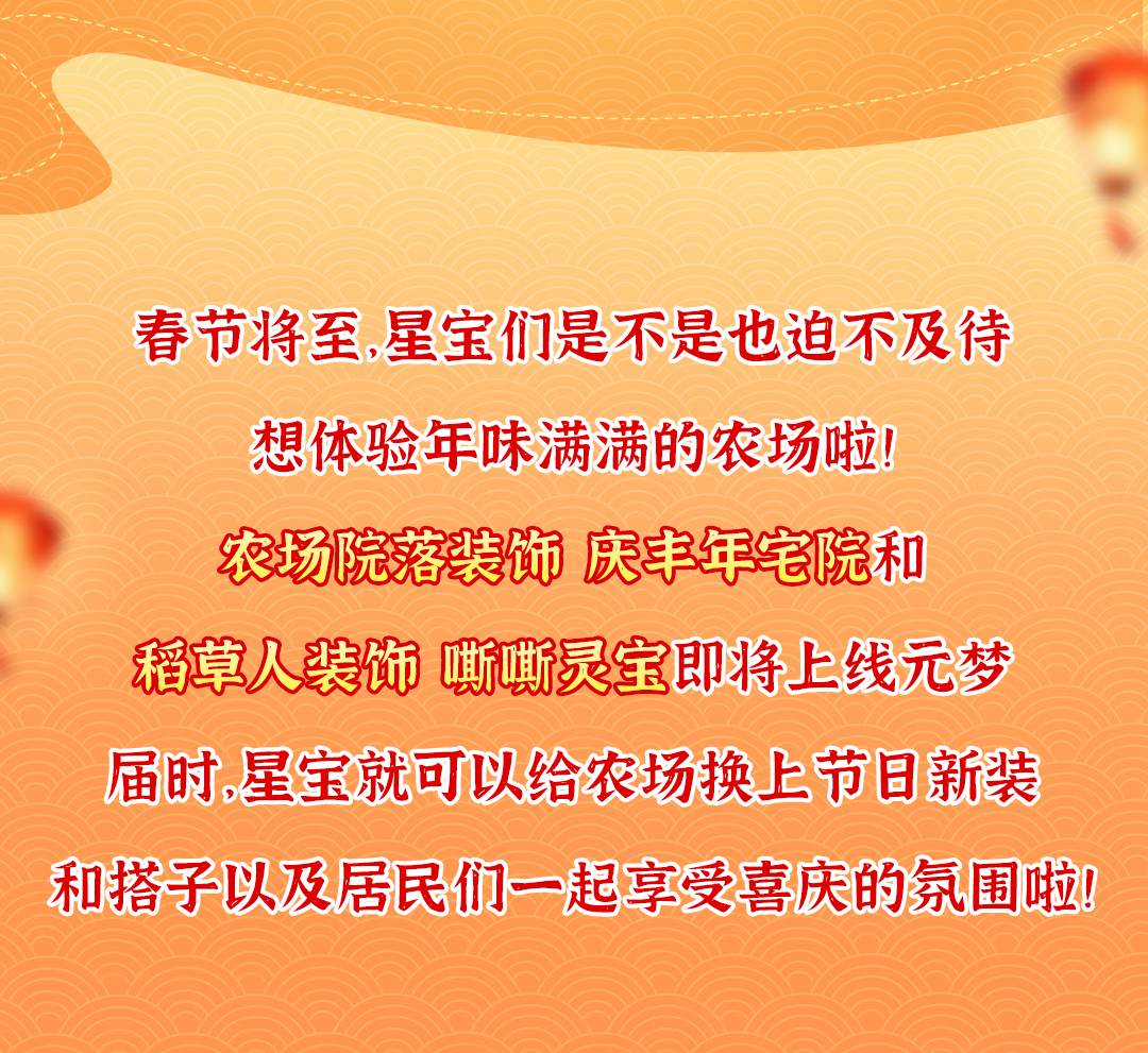 全新农场装饰来啦!庆丰年宅院+嘶嘶灵宝,快来打卡这波年味惊喜!