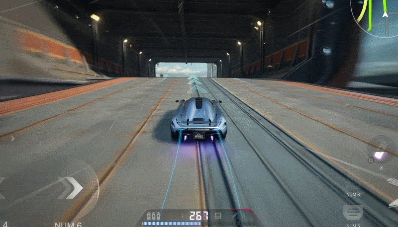 极速回环同样布满大量腾空点,能频繁激活科尼赛克 Regera 的空驭直驱增益,利用落地后的高极速和氮气加速甩开对手!