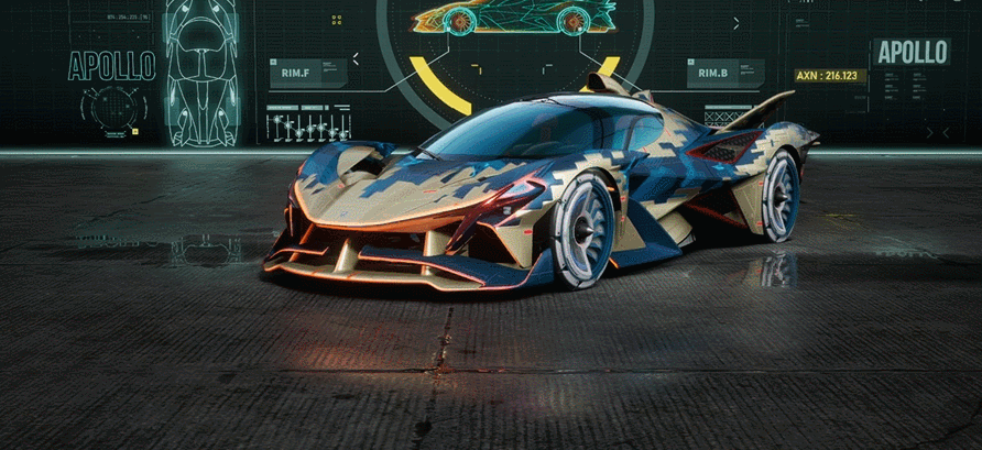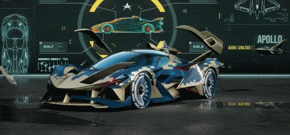 涂装融合双重风格:将第五代隐身战斗机的数码迷彩与共生体涂装结合,色彩碰撞间尽显未来科技感,让Apollo Project EVO在赛道上成为移动的视觉焦点。