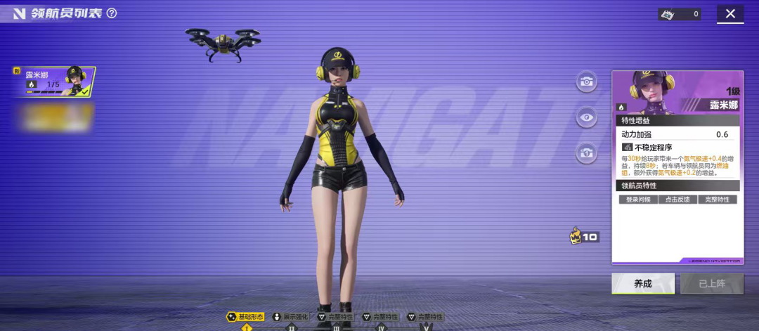 以露米娜为例,她的特性增益“不稳定程序”,将为赛车带来强劲的动力增幅,并在释放氮气的瞬间,助你突破速度极限,驾驶燃油跑车组赛车时还有额外增益。