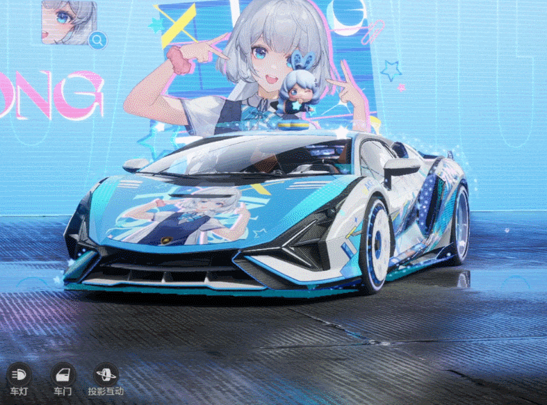 星瞳联动顶挂件附带专属投影效果,当街头赛车手们想见到星瞳时,点击“投影互动”按钮,即可召唤出可爱的星瞳Q版形象陪伴在你的身边~