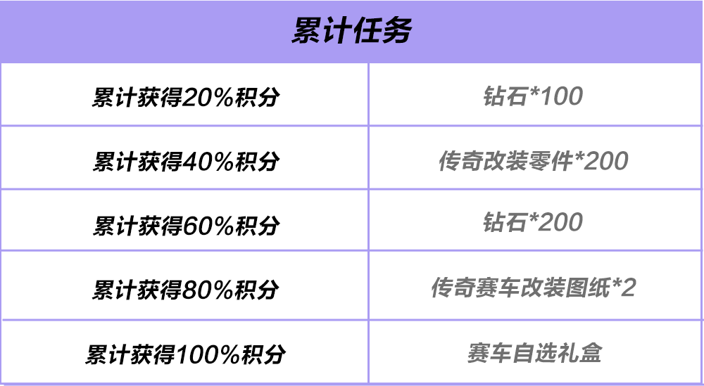 积累积分到一定数量,即可兑换“赛车自选宝箱”,3选1拿下你心仪的那辆传奇赛车!