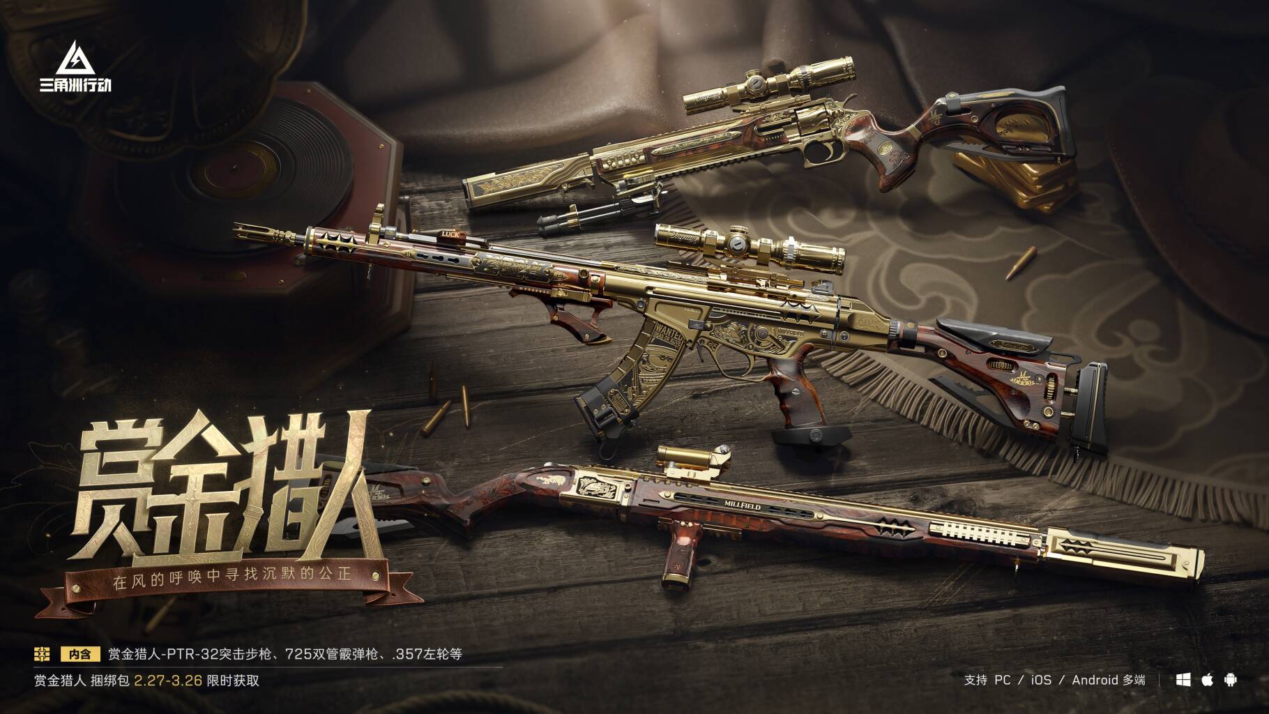 【赏金猎人】系列外观亮相!2月27日-3月26日,参与活动免费领取传说外观捆绑包自选包,开启后可自选1套传说武器外观捆绑包!