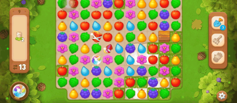 在游戏中,玩家不仅可以通过消消乐闯关,还有机会建设和装饰自己的花园。要想建设花园,玩家需要收集“小星星”,而“小星星”只能通过消消乐闯关来获得。每次闯关都有次数限制,玩家必须在规定的步数内完成目标。