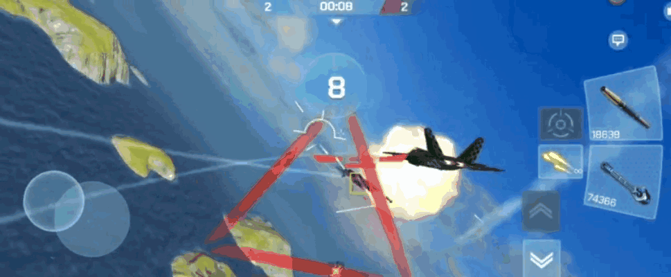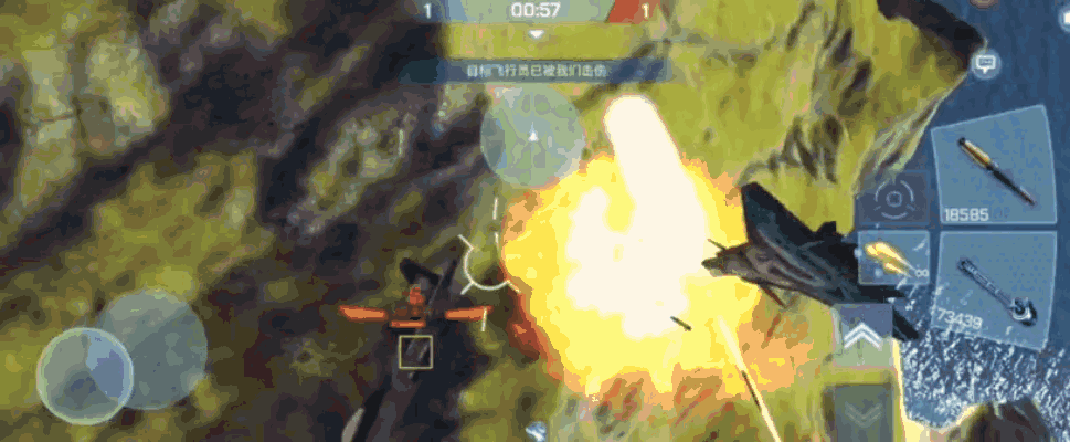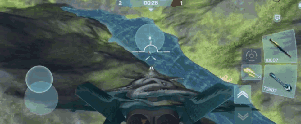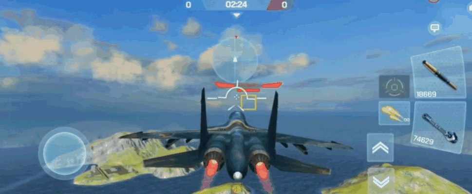 在战斗过程中,玩家可观察到画面中心设有准心,该准心用于锁定敌人并进行瞄准。当敌人进入特定范围时,准心将自动锁定目标,此时玩家点击屏幕左侧的导弹按钮即可发射导弹。导弹具备一定的追踪能力,且造成的伤害较大。