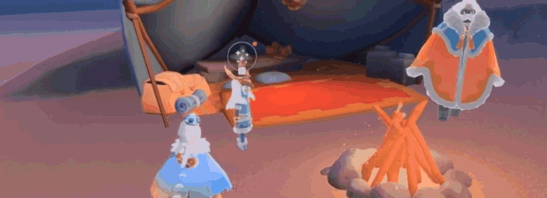 四位季节先祖散落于四大地图,兑换体系涵盖外观、动作与实用道具。云野 “风羽先祖” 提供羽毛短发与风之动作,挥手时带起的小旋风可吹飞螃蟹;雨林 “叶语先祖” 的叶片斗篷边缘呈叶脉纹路,飞行时飘落光斑,搭配叶笛乐器能奏出鸟鸣音色;霞谷 “焰角先祖” 的焰纹围巾与长裤充满活力,跺脚产生的火焰可点燃黑暗植物;暮土 “尘隐先祖” 的深灰斗篷带沙尘特效,下蹲动作能短暂隐藏身形躲避冥龙。