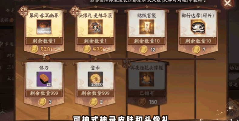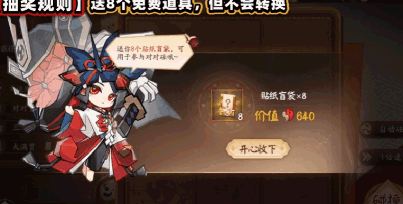 同日开启的「式神对对碰」活动持续至 11 月 11 日 23:59,堪称外观党福利盛宴。首次进入活动可免费领取 8 个「贴纸盲袋」,后续可消耗勾玉或魂玉购买。使用盲袋抽取 Q 版式神贴纸后进行碰撞,即可获得「福运币」,累计后可兑换限定幕间皮肤「赤溟幽界」、具备四种动态表情的「曼殊华蕊・彼岸花动态头像礼」。