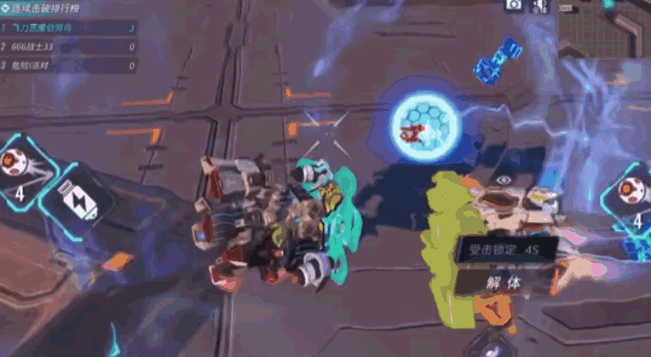 使用时要注意在擂台边缘游走,避免站在中央;看到敌人就滑动屏幕精准勾中,甩出去后立刻用磁暴防止对手用钩爪返回。如果对手在远处攻击战车底盘或 “脖子”,跳起来开启隐身就能轻松规避伤害。