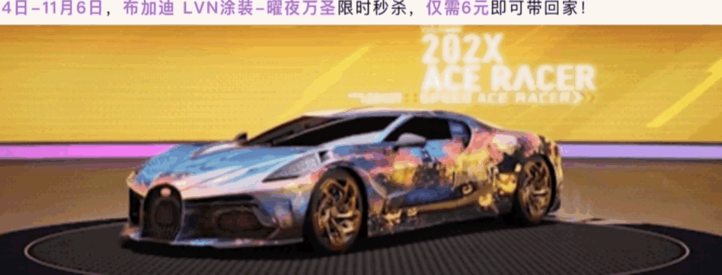 而布加迪 LVN 万圣涂装更是神仙级期待 —— 作为速度节的 “超跑顶流”,若披上万圣外衣,大概率会融入南瓜橙渐变车身、幽灵暗纹细节,甚至车灯亮起时会有蝙蝠光影特效,开着它在赛道飞驰,绝对能赚足回头率。