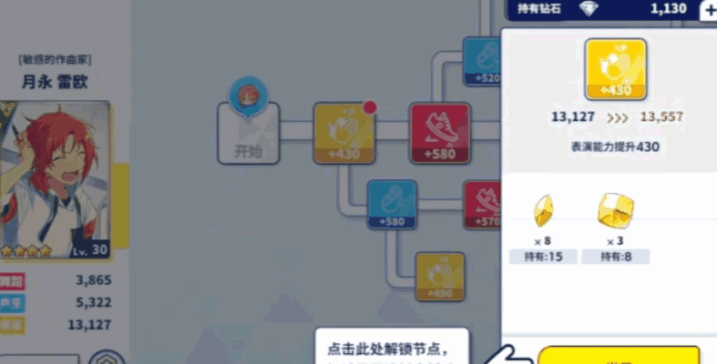 养成优先级要记好:先升各颜色 C 位的等级,再解锁 C 位 “偶像之路” 至少到 “偶像之花开” 阶段,接着点满偶像之路的技能,最后再把额外属性加成拉满。