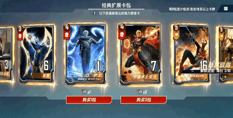 其中钢铁侠的辅助能力堪称顶尖,旗下的 “小辣椒”“异界战争机器” 是通用性极强的核心卡,适配各类阵容。因此在资源有限的情况下,建议优先抽取钢铁侠卡包,核心目标是拿到两张 “小辣椒”,达成后即可停手转抽其他阵营。