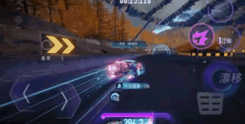 赛道中段蜿蜒攀升,贡嘎河倒映着红枫与仙乃日雪峰,夏诺多吉陡峭岩壁下的惊险弯道,成为考验驾驶技术的终极关卡。更令人惊喜的是晴雨雪阴四象天气轮转,雪天里藏寨与草甸被白雪覆盖,红色屋檐与雪峰反光交织,每一次行驶都能收获全新体验。