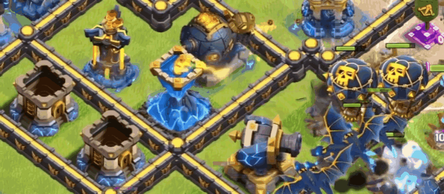 此前限时登场的 “陨石戈仑” 现已转为常驻兵种,17 级大本营可解锁,被击败后会分裂成两只小型陨石戈仑,既能跃过城墙攻击目标,还能重新合体,为地面进攻提供更多战术选择,18 级大本营可解锁其最高等级。