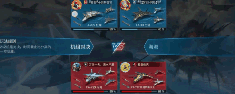 “机组对决” 是 1 级即可解锁的 2V2 排位对战模式,核心考验团队协同作战能力。玩家可通过主界面组队功能,邀请好友、战队成员,也能在组队频道匹配队友,每局携带 3 架战机出战,被击落后可复活,若全部战机遇难则进入观战模式。对战限时 3 分钟,以击杀敌机数量定胜负,比分持平将触发 1 分钟加时赛,先击杀敌机者获胜。战斗中可采用 “一人吸引火力、一人绕后攻击” 的战术,借助俯冲翻滚躲避导弹,运用鹰眼模式扩大锁定范围精准打击。胜利方击杀数最多的玩家将获得 MVP 称号,助攻表现突出的玩家获评最佳队友,战斗结束后可领取排位积分与勋章奖励,助力提升个人及战队排名,是锤炼空战技巧与团队配合的核心玩法。