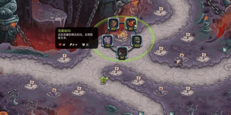 “恶魔熔坑” 是游戏中第 7 关解锁的控场辅助型防御塔,核心优势在于拦截敌人与持续伤害输出,而非主力爆发。它能持续召唤小恶魔拦截地面敌人,小恶魔死亡后会触发爆炸;升级 “爆炸大师” 技能后,爆炸伤害将显著提升,还会附带无视护甲的持续灼烧效果。另一项核心技能 “天降魔头” 可召唤大恶魔,既能阻挡敌人前进路线,又能造成范围爆炸伤害,且冷却时间较短,适合频繁控场。这款防御塔在狭窄通道、精英怪密集的关卡中表现尤为突出,能有效拖延敌人推进节奏。