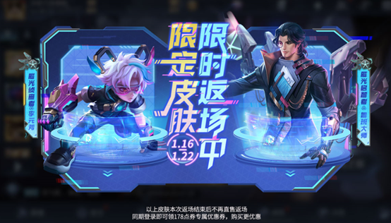 请注意,本次返场活动结束后,李元芳的匿光侦查者和鲁班大师的匿光启智者两款皮肤将不再通过直售方式返场,有需求的玩家请抓住这次机会。