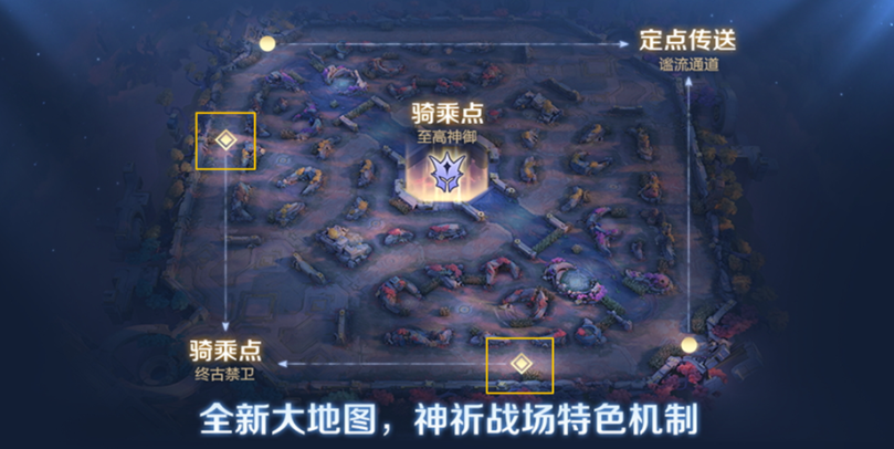 ● 每局比赛开始后1分30秒,上下边路一塔与二塔之间将刷新【终古禁卫】机甲,所有友方玩家均可骑乘。