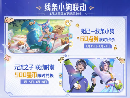 “线条小狗”联动活动持续升温,全新时装【活力线条小狗】萌动登场!这一次,马尔济斯与小金毛两位可爱伙伴正式踏入王者峡谷,化作灵动身影,穿梭于战场之间。它们所到之处,仿佛播下了新年的幸福种子——在塔下悄然发芽,在对局中缓缓生长,用纯真的陪伴驱散迷茫,用温暖的治愈抚平焦虑。