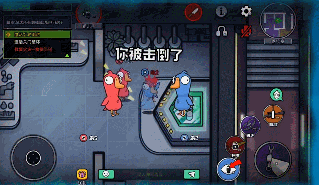 游戏分为三大阵营:鹅(好人)、鸭(坏人)与中立角色,各自拥有独立且互斥的胜利条件。鹅阵营需完成全部任务,或通过会议投票淘汰所有鸭子及威胁性中立角色来获胜;鸭子则依靠击杀鹅成员、制造破坏(如断电、锁门)扰乱秩序,达成隐性控制;中立角色则追求个人目标,不依附任何一方,胜败全凭策略与时机。