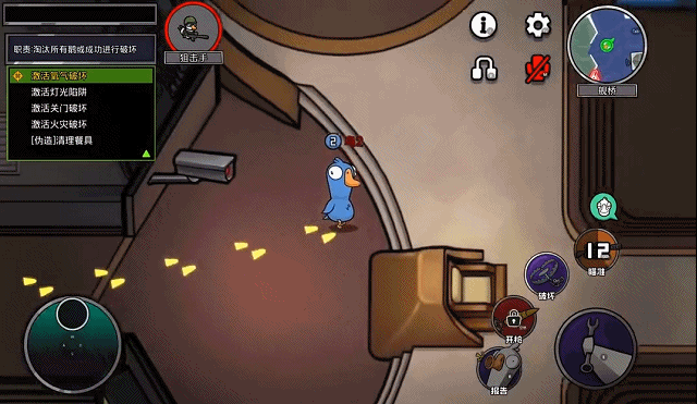 鸭阵营(坏人) 擅长隐匿与制造混乱。食鸟鸭可吞食尸体,阻止会议触发,打乱鹅方节奏;隐形鸭拥有10秒隐身能力,可从视觉盲区突袭后迅速撤离;刺客在会议中有两次身份猜测机会,可精准清除关键好人;炸弹王通过引爆制造恐慌,掌控局势节奏,是团队压制的核心。