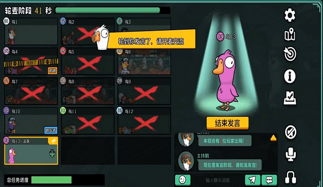 游戏流程清晰划分为三个阶段:行动阶段,玩家自由移动,执行任务、暗中击杀或破坏设施;会议阶段,一旦发现尸体,立即进入讨论与投票环节,通过言辞交锋与逻辑推理,决定淘汰对象;幽灵阶段,被淘汰者化为幽灵,虽无法互动,但鹅阵营幽灵仍可继续完成任务,为存活队友提供隐性支援,延续贡献。
