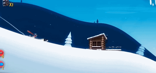 此外,玩家还能在特定小屋中获得雪地摩托车,这辆酷炫载具可容纳多个动物伙伴,具备多次抗打击能力,极大提升生存几率。当玩家持续收集金币或完成高难度动作,填满奖励状态条后,更有机会激活火箭船等高级工具,体验风驰电掣的极限滑行。