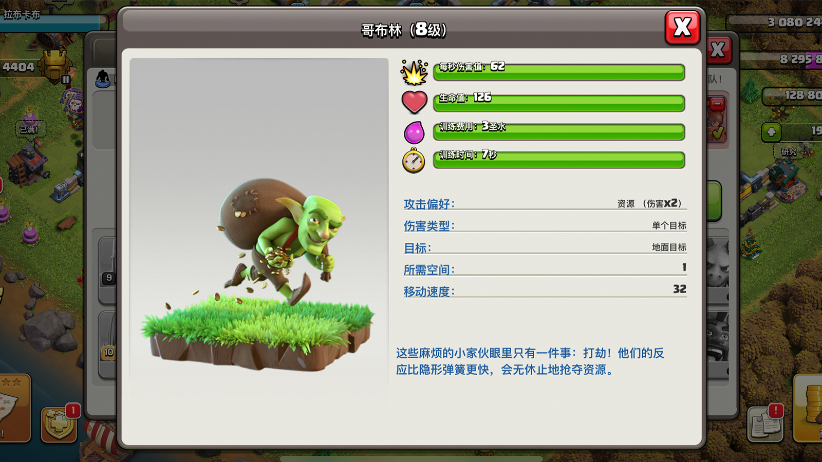 其实在游戏当中哥布林作为防守援兵虽然没有攻击伤害,但是相对于大部分兵种却能起到牵制作用!因为哥布林在防守的过程中一旦出部落城堡,那么整个阵型都将是哥布林的溜冰场,玩家会发现这个兵种并没有固定的攻击目标,只会胡乱奔跑,可正是因为这种漫无目的的奔跑,对于一些已经被吸引的兵种来说更为致命,毕竟在阵型当中奔跑更容易受到周围防御建筑的攻击,更不用说还追不上哥布林!