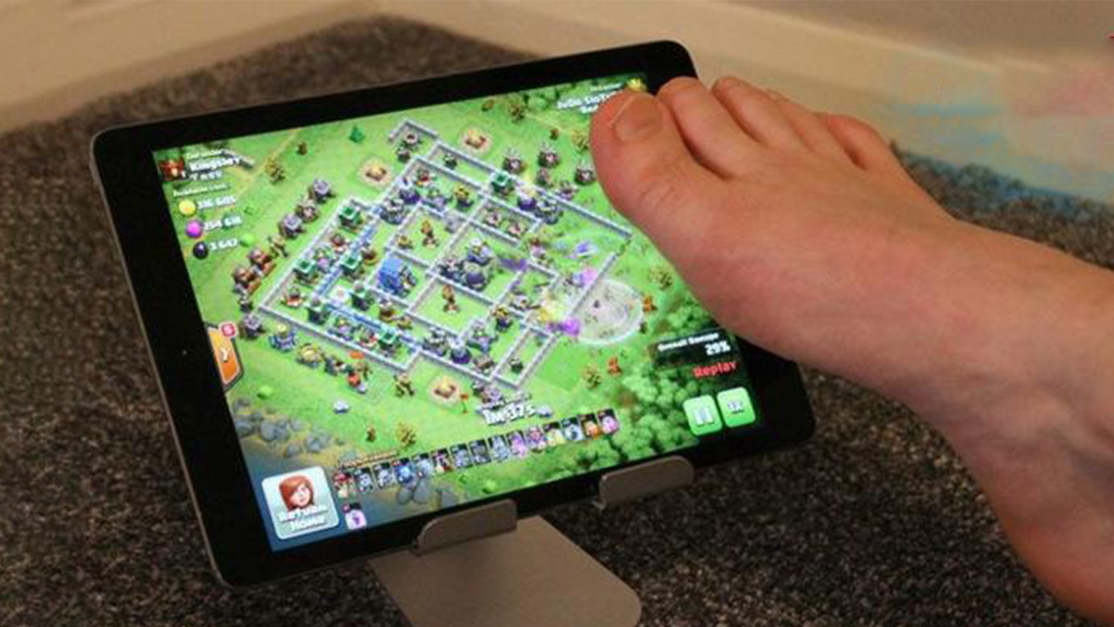 其实并非如此,该玩家实实在在用脚玩了部落冲突,并且还打出了良心的战绩!玩家可以从图片上看到一只大脚伸向了平板电脑上的部落冲突,并且利用脚趾轻松进行下兵进攻,并取得两星的战绩!而这场对局也并非是低本阶段,而是十二本的对局,并且运用灵活的脚趾取得了很多玩家无法正常取得的两星战绩!这话虽然有点气人,但是却实实在在发生在一个外国主播身上,也用脚给很多玩家上了一课!