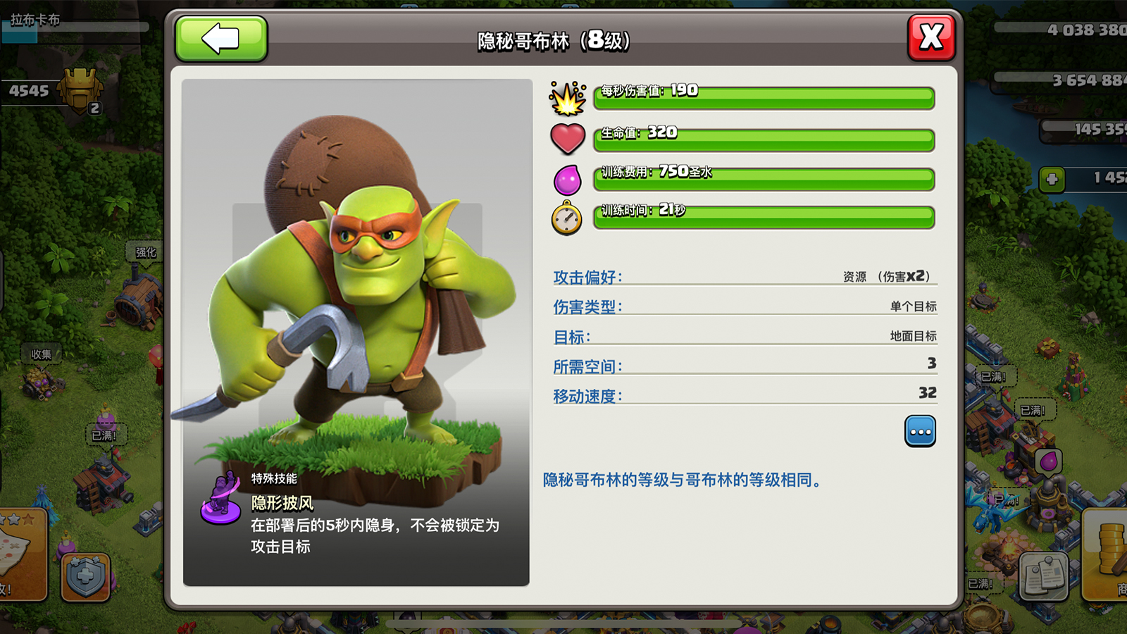 因为哥布林打资源虽然强势,但是本身的兵种强度并不是太高,在进攻的时候虽然进攻资源效率比较高,但是在进攻的途径当中却极其容易被其他防御建筑所打掉,而超级哥布林的产生却改变了如此现状,隐身的超能力可以让超级哥布林直接走向成功,只要伤害有所保证,基本上借助隐身的能力可以弥补超级哥布林的各种缺点,所以现如今哥布林也借助超级哥布林成为了资源一哥!