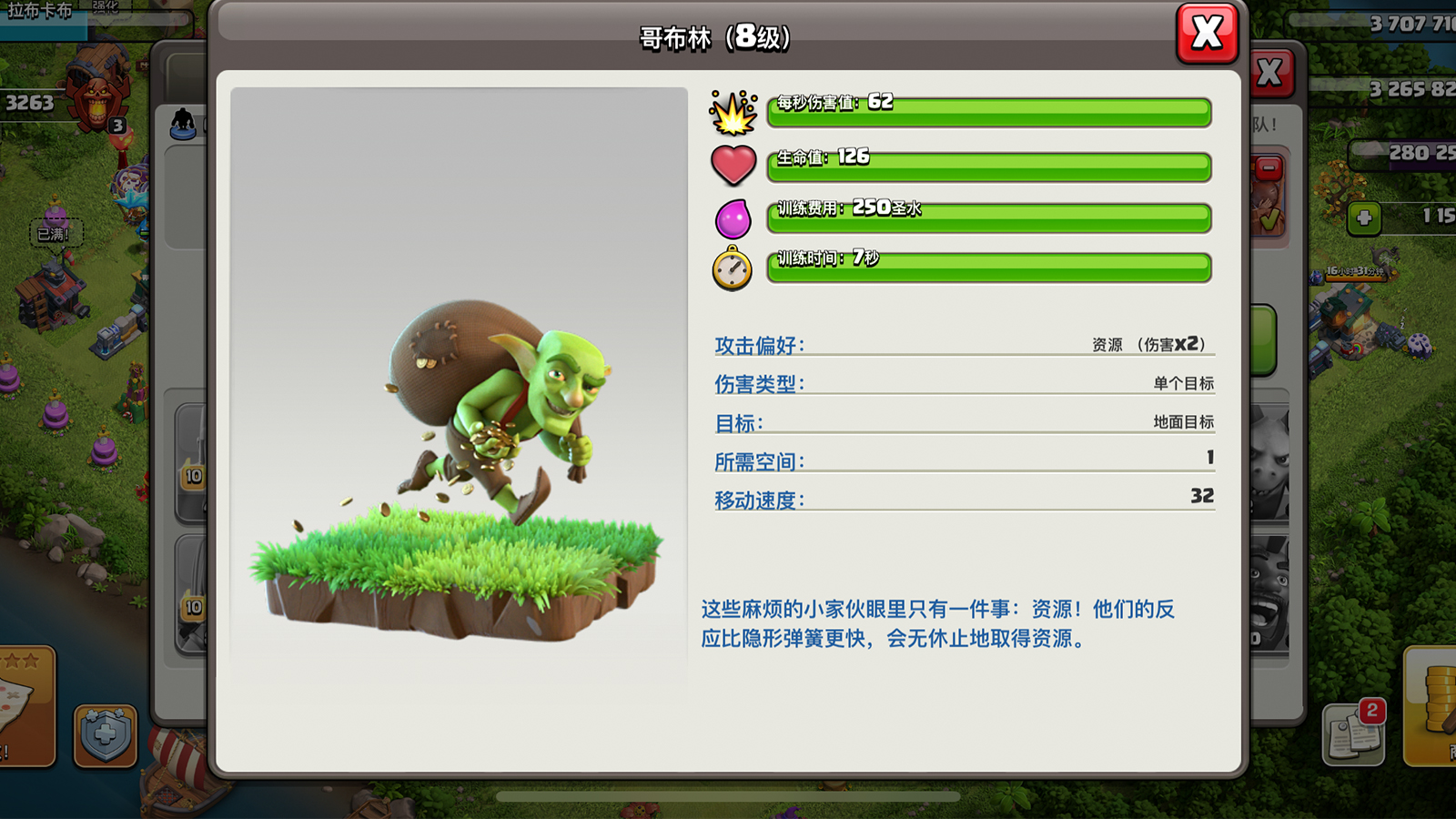 因为在部落冲突当中都是围着资源进行的,在游戏当中哥布林可以轻松获得高额的资源,虽然往往以降杯为代价获取资源,但是对于急缺资源的玩家来说哥布林简直是神兵天降的打资源神器,所以很多时候哥布林在众多兵种当中备受推崇!毕竟在日常的时候任何发育都是围绕着资源进行的,而普通兵种也无法做到哥布林的快捷以及高效,所以哥布林也是极其成功的!